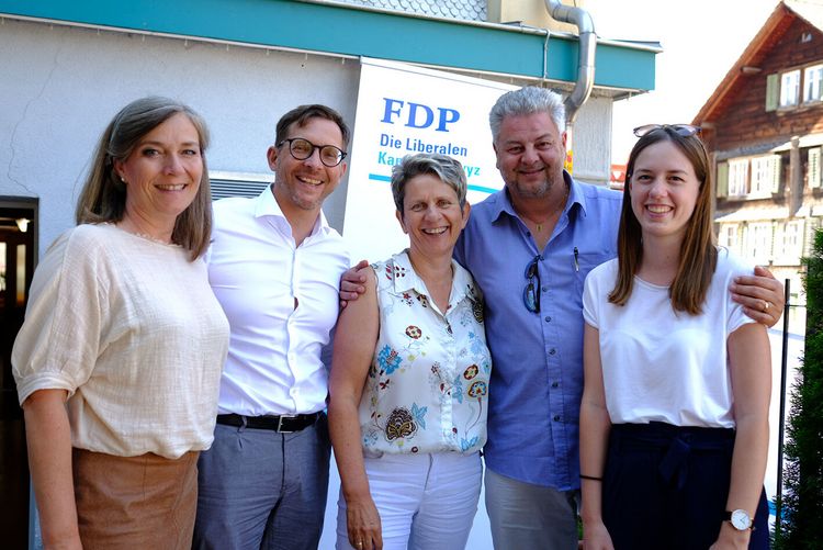 Die FDP Rothenthurm ist wieder aktiv. Nach fast fünf Jahren der politischen Funkstille hat sich der gebürtige Brunner Reto Casagrande, der mit seiner Partnerin seit einigen Jahren in Rothenthurm wohnt, der FDP-Sektion angenommen und am Samstag im lauschigen Garten des Restaurant Ochsens zum «Comeback» geladen. Dies liessen sich bekannte liberale Politiker wie auch Einheimische nicht nehmen und stiessen auf die wiederbelebte FDP Rothenthurm an. So waren mit Landammann Kaspar Michel, FDP-Parteipräsidentin und Nationalrätin Petra Gössi sowie den Kantonsräten Heinz Theiler, Sibylle Ochsner und Marlene Müller-Diethelm alle fünf liberalen Kandidatinnen und Kandidaten der Wahlen vom kommenden Herbst vor Ort und gratulierten den Rothenthurmern für ihr Engagement. «Wir wollen uns in Rothenthurm für das lokale Gewerbe, aber auch Umwelt- und Energiefragen engagieren und im März 2020 mit zwei Kandidaten an den Kantonsratswahlen teilnehmen», verriet Reto Casagrande.