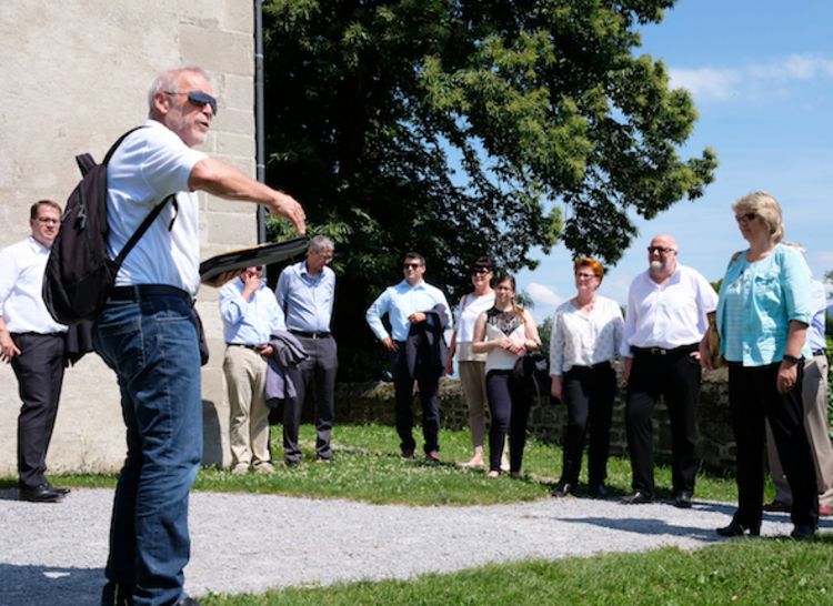 Die beeindruckende Geschichte der Klosterinsel Ufenau wurde der FDP-Fraktion und ihren Gästen am Mittwoch von Fredy Kümin vermittelt. Rechts im Bild: FDP-Präsidentin Marlene Müller und der neue Kantonsratspräsident Christoph Räber.